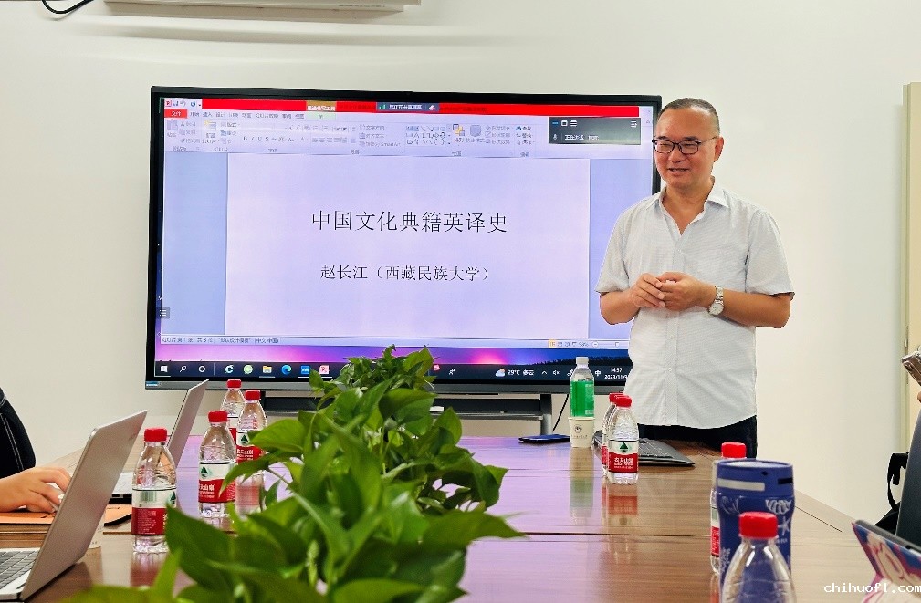 本网讯 2023年11月8日下午,中国英汉语比较研究会典籍英译专业委员会副会长、西藏民族大学高原学者特聘教授赵长江应xk星空官方网站邀请,在第一教学楼北楼446李筱菊教师发展中心做了题为“中国文化典籍英译史”的学术讲座。讲座由星空平台官网那不勒斯战略伙伴Q文化系主任许景城博士主持。