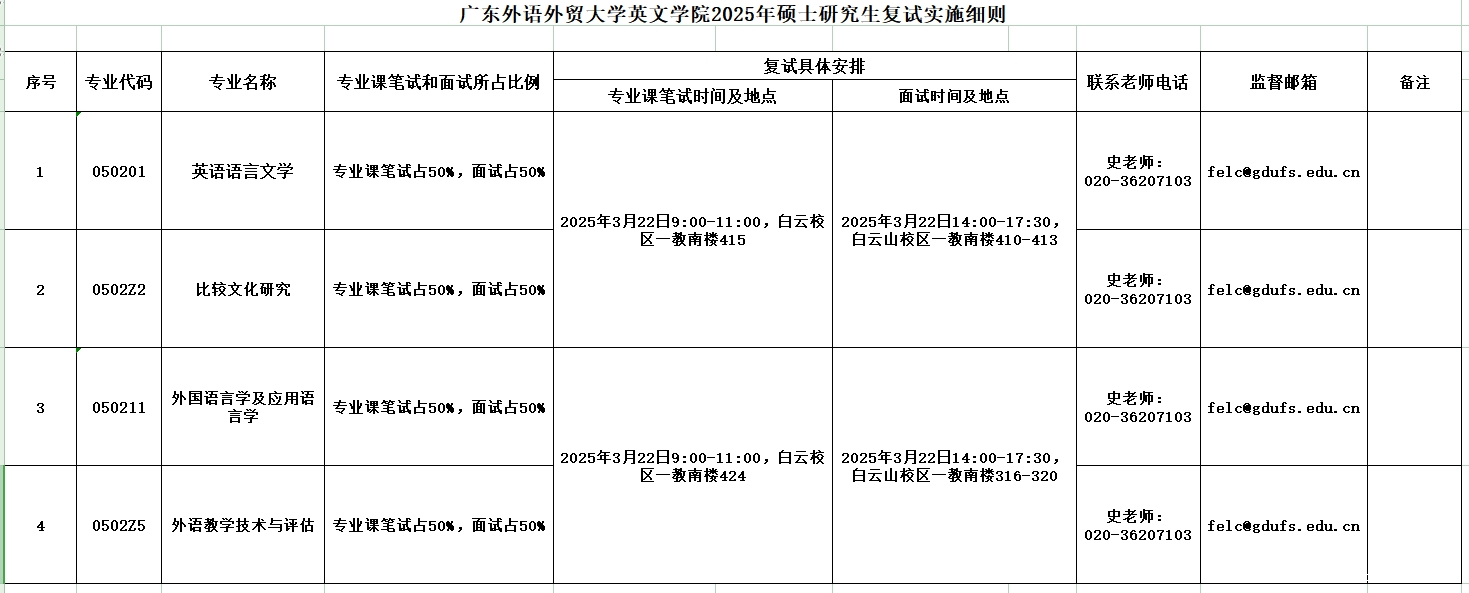广东外语外贸大学英文学院2025年硕士研究生复试实施细则