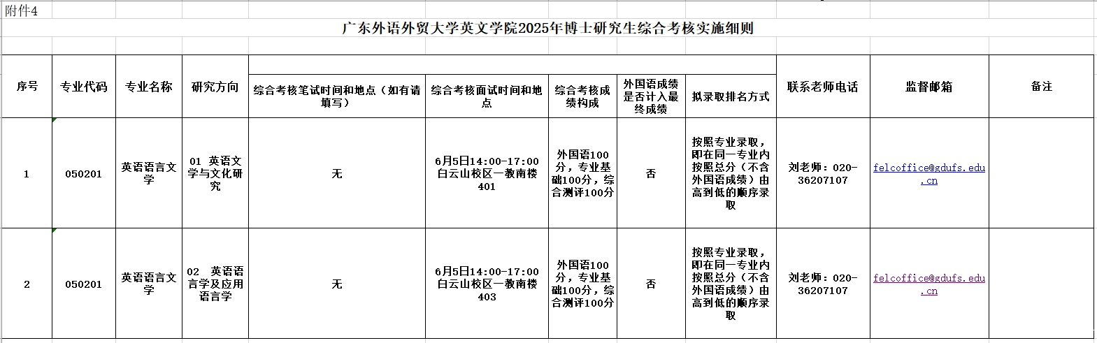 广东外语外贸大学英文学院2025年第二轮博士研究生综合考核实施细则