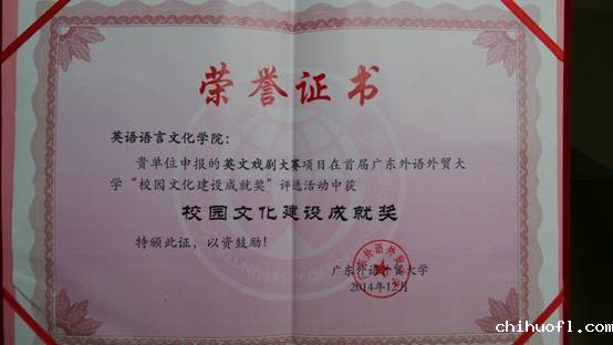 戏剧大赛2014年获得“校园文化建设成就奖”