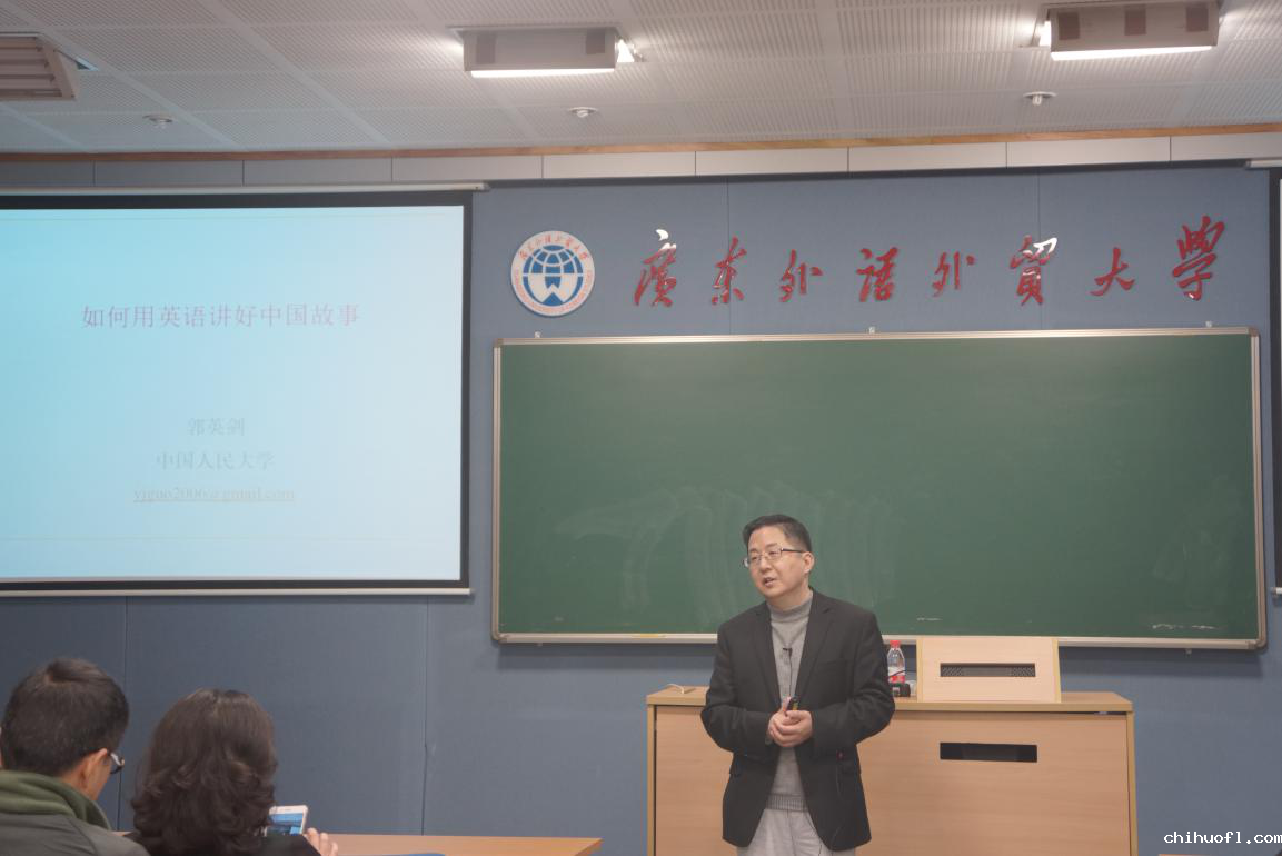 本次讲座通过对现实生活以及文学作品中翻译现象与翻译实践的案例考察,梳理当下用英语讲好中国故事时的难点、问题与困境,进而探讨解决问题的可能性。讲座中,郭英剑教授围绕“如何用英语讲好中国故事”这个主题,解释了“何为中国故事”、“为何要用英语讲中国故事”、“怎样才是讲‘好’了中国故事”几个问题,引用了米歇尔·奥巴马演讲中的句子“When they go low, we go high”及其中文翻译案例,介绍了美国作家赛珍珠的文学作品中的文化现象,最后提出了“三个至关重要”观点:学好英语至关重要、讲好中国故事至关重要、讲好全球故事至关重要。讲座末尾还进行了热烈的讨论,郭英剑教授认真详细地回答学生的提问。