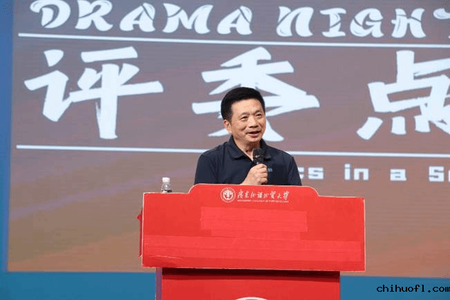 各剧组结束表演后,汕头大学文学院院长毛思慧教授对本次戏剧大赛作出了精彩点评。他首先称赞了四个剧组的精彩表现,每个剧组在台词、舞台、音乐等方面都别出心裁。他认为这是迄今为止最好的戏剧大赛之一,本次戏剧大赛的主题——科幻和伦理,在当今社会也具有深刻的现实意义,学生们在表演中更是呈现了科技与传统、心灵与思想、爱与其对立面的冲突。随后毛教授对四个剧组进行点评。他认为各个剧组都运用了音乐、色彩等元素呈现出简单而亮眼的舞台设计,剧本内容富有想象力,角色丰富多样,演技到位。最后,毛教授再次感谢剧组全体人员为现场嘉宾和观众献上一场精彩迭出的表演,期待广外英文的同学们在生活的舞台上继续发光发热。
