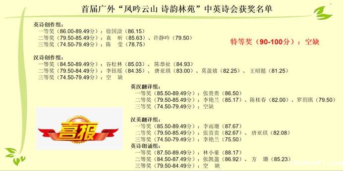 此次中英诗会共设有三个赛事大组,分别为创作组(英诗创作与汉诗创作)、翻译组(英诗翻译与汉诗翻译)和朗诵组(汉诗朗诵与英诗朗诵)。自从2019年12月2日发出赛事通知之后,便开始陆续收到了来自广外不同学院不同年级同学的参赛作品。在经过初赛和决赛严格的层层筛选之后,最终有18位同学的21个作品入围总决赛。