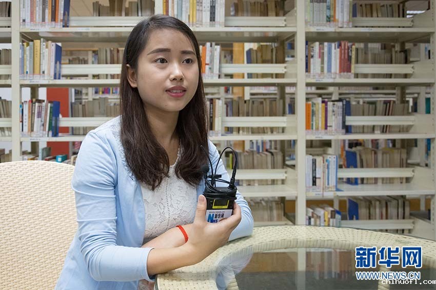 刘诗薇接受采访。新华网发(罗世伟 摄)