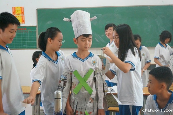艺术课老师引导大家用废纸制作环保时装,让学生们亲手设计、制作属于自己的时装,课堂气氛相当活跃。学员们都发挥自己丰富的想象力,整个小组通力合作,为最后的环保时装秀作充分准备。