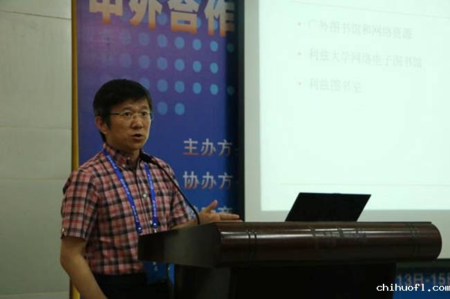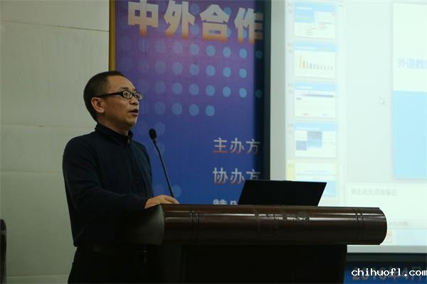 接下来由王蕴峰进行讲话。他对广东外语外贸大学与英国利兹大学合作举办英语教学硕士学位教育项目进行了介绍。首先他对该项目进行了简介和回顾,并对项目进行了反思,最后他和大家分享了一些他对于中外合资办学的一些其他想法。