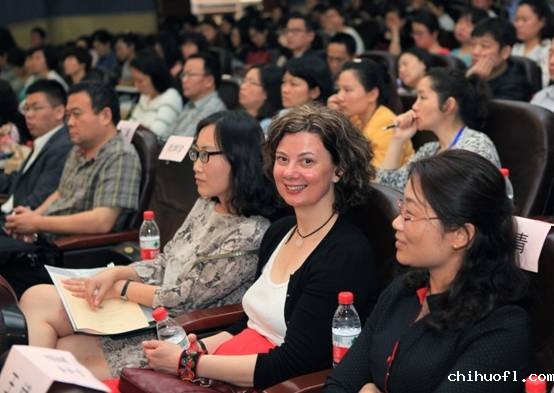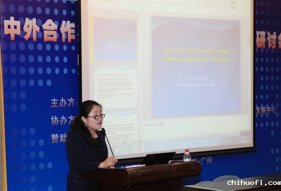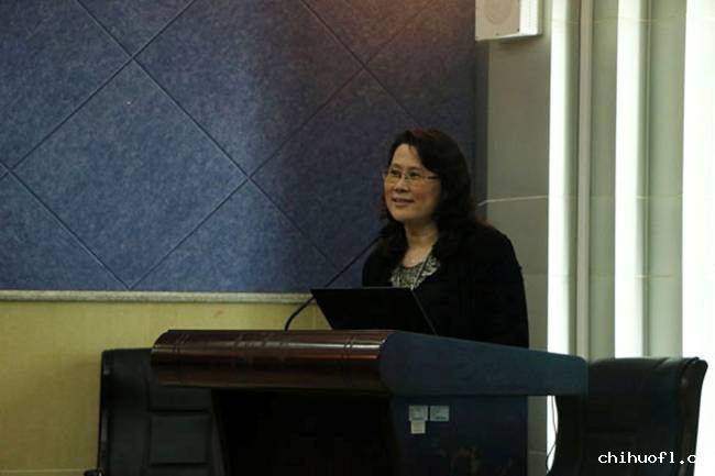在姜琳的主持下,会议正式拉开序幕。首先由黄志红研究员发言。她就中外合资办学这个话题,从中外合资办学的师资培训背景、合作项目的回顾和反思、深化中外合作办学的思考这三个方面分享了自己的一些经验和看法。她在此次的发言中多次强调了培养师资以及摆正合作理念的重要性,获得了与会人员的一致赞同。