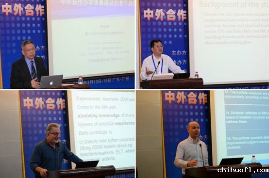 随后,厦门大学林金辉教授、北京师范大学程晓堂教授分别以“中外合作办学质量建设的若干政策动向”、“The Use of Pre-learned Teaching Methods by Novice EFL Teachers ”为题做主旨发言。