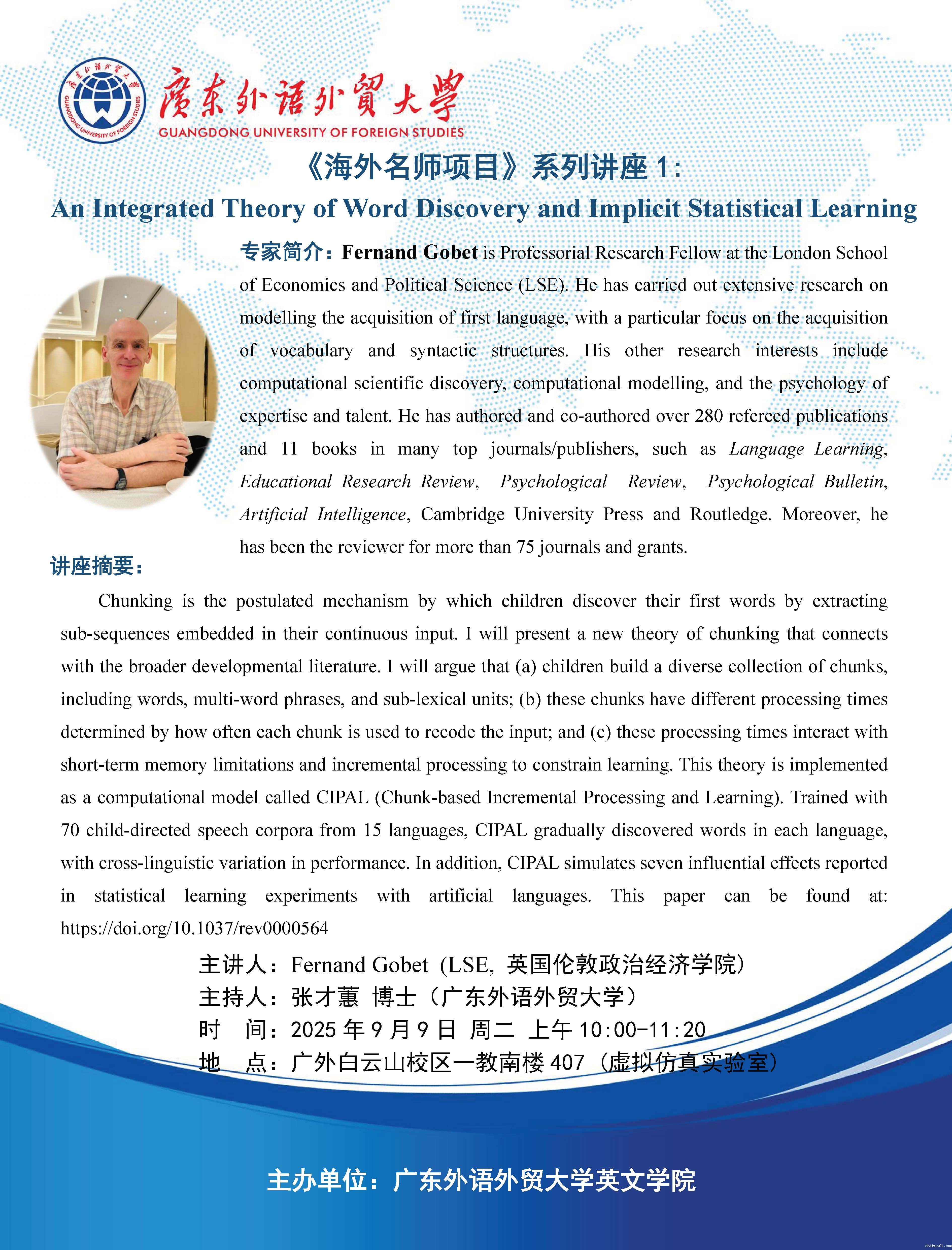 《海外名师项目》系列讲座1:An Integrated Theory of Word Discovery and lmplicit Statistical Learning