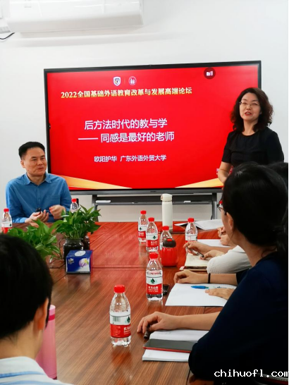 本网讯 10月20日下午14时30分,英文学院在第一教学楼北楼446室召开2022年全国基础外语教育改革与发展高端论坛,探讨后方法时代的教与学,即“双减”形势下,教师如何运用人本主义心理学的同感、共鸣、引领原则为学生量身定制学习方法。此次讲座由英文学院教授、博士生导师欧阳护华主讲,英文学院丁凤教授主持。学校教师代表,及我院相关人员、部分研究生代表参加了此次论坛。