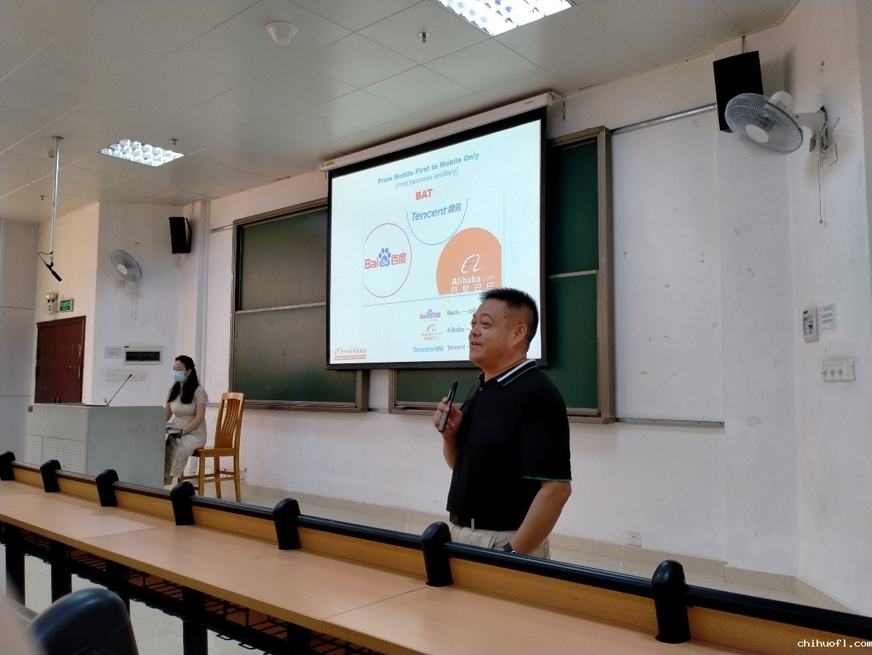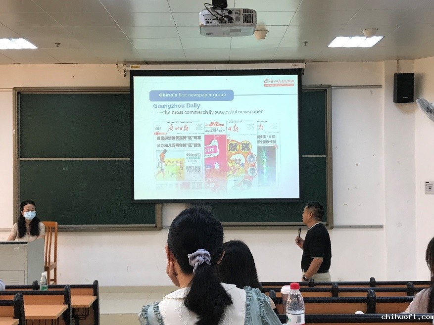 本网讯  2021年7月8日上午,广州日报报业集团对外交流办主任吕顺景受邀为英文学院英美文化系的师生作了题为“全球媒体的未来——生存与发展”的全英文专题讲座。讲座由潘莉教授主持。
