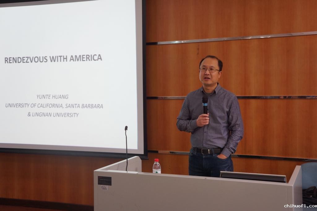 本网讯 2018年12月13日下午,应英文学院英美文学系之邀,美国加利福尼亚大学黄运特教授在九教103丝纺讲堂作了题为“与美国的交集“的学术讲座,讲座由杨静教授主持。