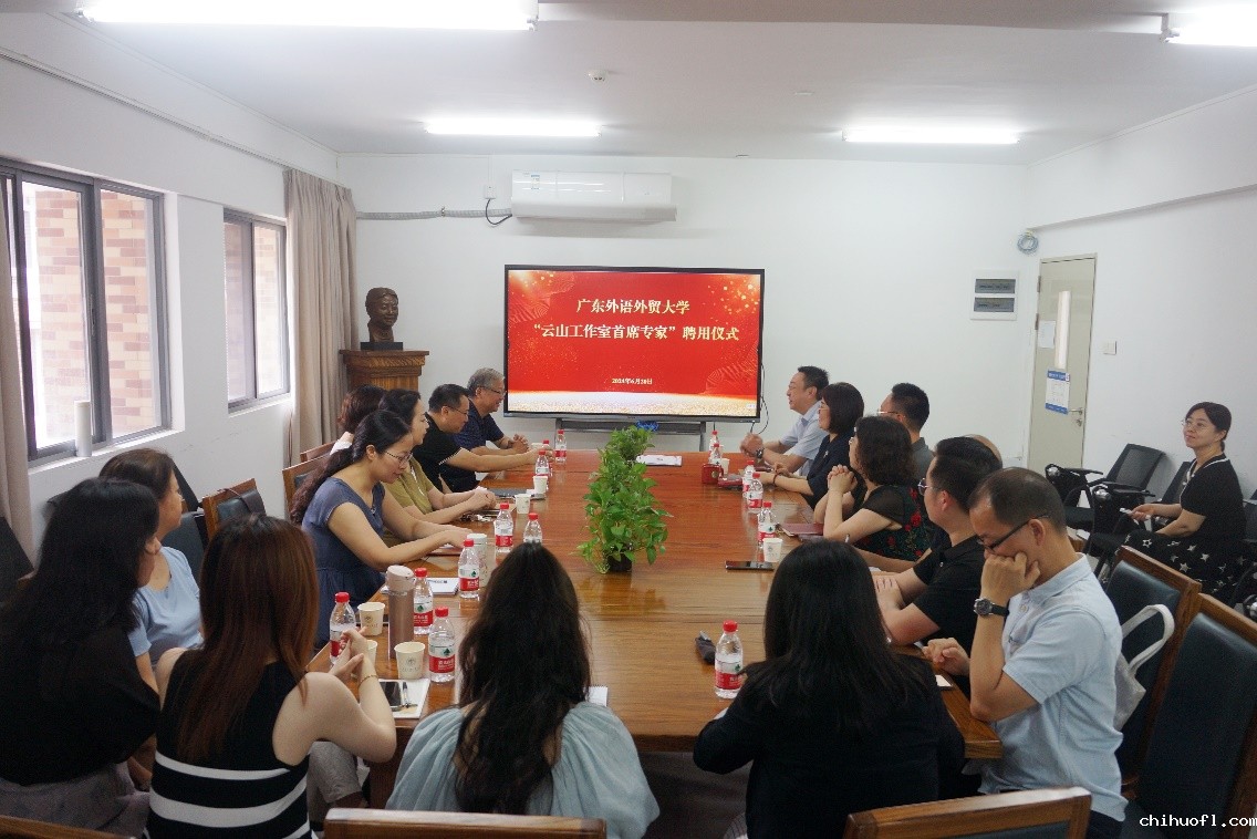 王教授表示广东外语外贸大学外语学科发展迅速,学科实力雄厚,发展特色突出,学术氛围良好,加入广东外语外贸大学并受聘外语学科云山工作室首席专家是他认真考虑后的选择。多年来,他与广东外语外贸大学学者同仁建立了深厚的情谊,希望今后与广东外语外贸大学同仁一道,共同助力广东外语外贸大学的学科建设及学术发展,推动广东外语外贸大学的一流学科建设工作。