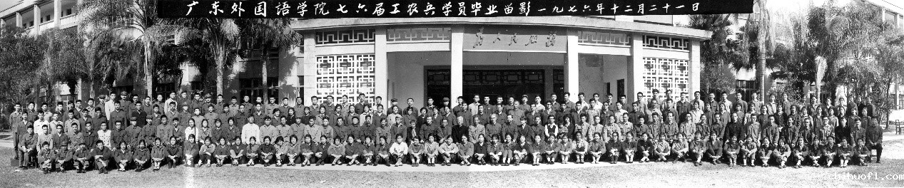 10月,广东省革命委员会对广东高校实行“调、并、迁、改”,中山大学外语系、暨南大学外语系、外贸系以及广州外国语学校并入广州外国语学院,同时学校更名为“广东外国语学院”。校址迁至广州市北郊黄婆洞原中南林学院旧址。